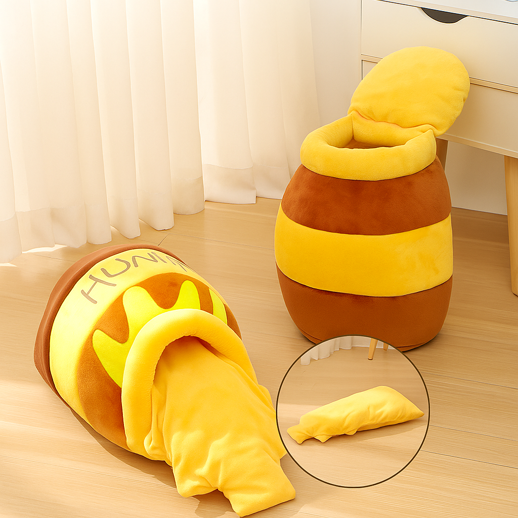 Ce lit en forme de pot de miel est le cocon idéal pour chats, chiots, lapins ou petits rongeurs ! Doux, chaud et réconfortant, il offre à votre compagnon un espace et moelleux tout en ajoutant une touche adorable et originale à votre intérieur.